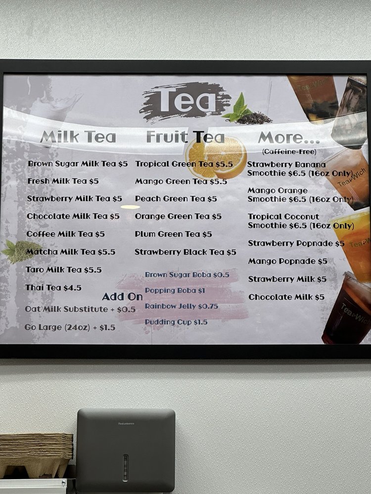 TeaWich also caters to diverse tastes with a selection of bubble teas, including the creamy Thai Tea and classic Taro Milk Tea. The atmosphere is inviting, completed by top-notch service and accessibility features like Braille menus and an ADA-compliant restroom. Whether dining in or opting for takeout or delivery, TeaWich has quickly become a go-to spot for fresh, flavorful meals that leave you craving more.