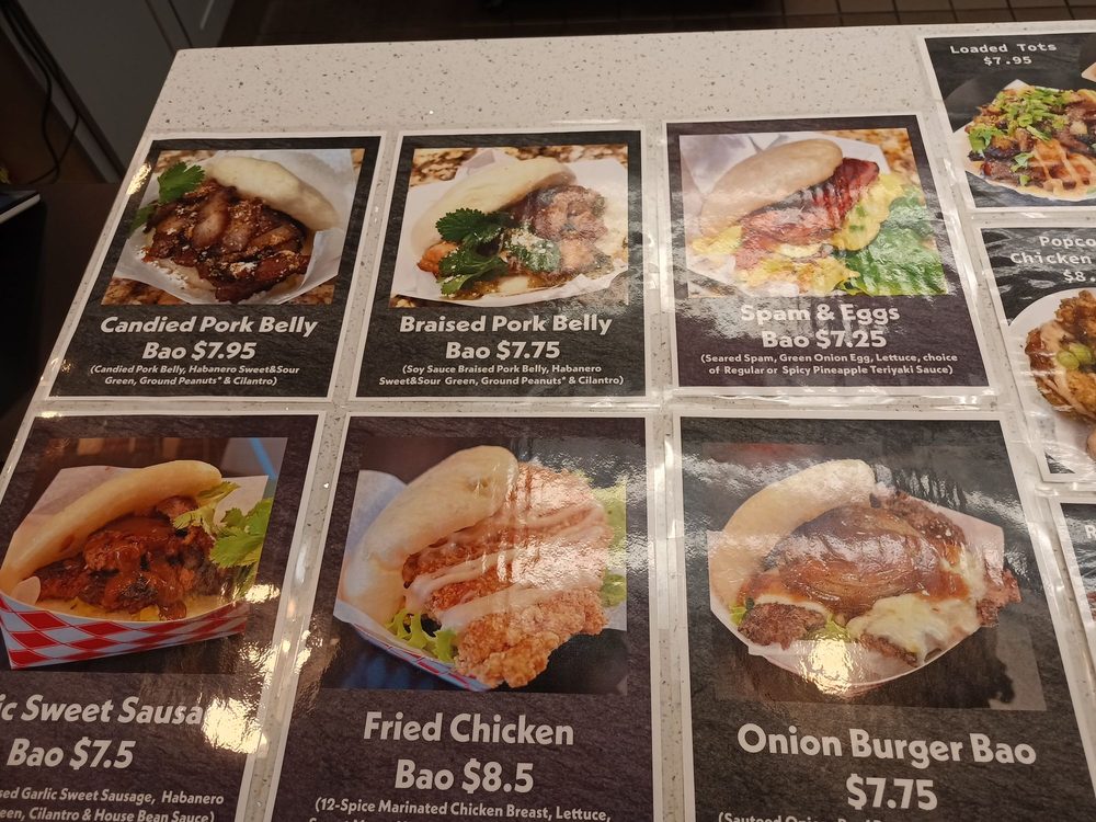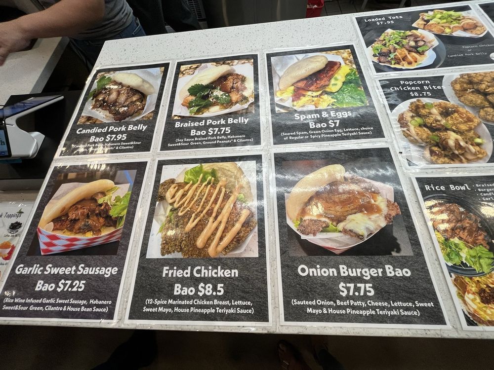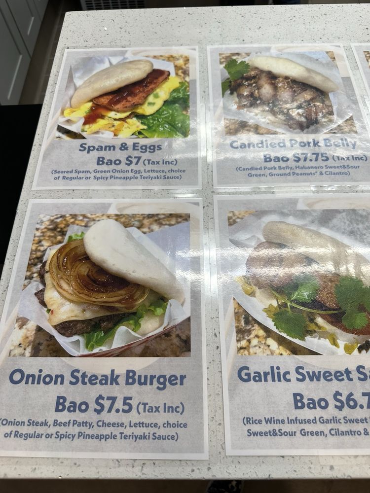 Teriyaki seared spam paired with green onion and egg, laid on top of a bed of crispy lettuce and drizzled in house sauce, all stuffed in a heavenly soft bao!